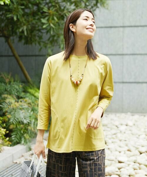 コットン100%で目面がすっきりとした素材感が上品なチュニックカットソー