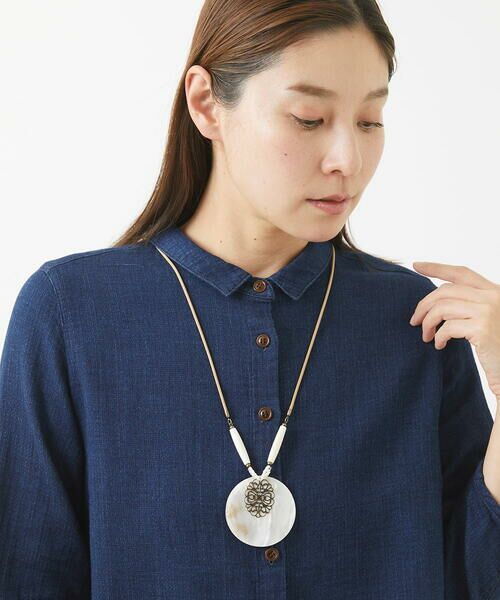 シェルのワントップネックレス。白色の綺麗なシェルでしっかりとした厚みのあるものにしています。丸カンの代わりにビーズでパーツをつないでおり、重ねたパーツと白いボーンパーツにより、とても上品です。※紐の長さは調節可能です※アクセサリーパーツ・部品などの金属部分に鉛が含まれている場合があります。小さなお子様が口に入れたり誤って飲み込んだりしないように、使用や保管の際は厳重にご注意ください。