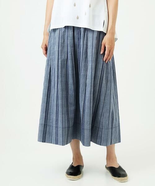 素材の凹凸感と涼やかなストライプ柄ギャザースカート
