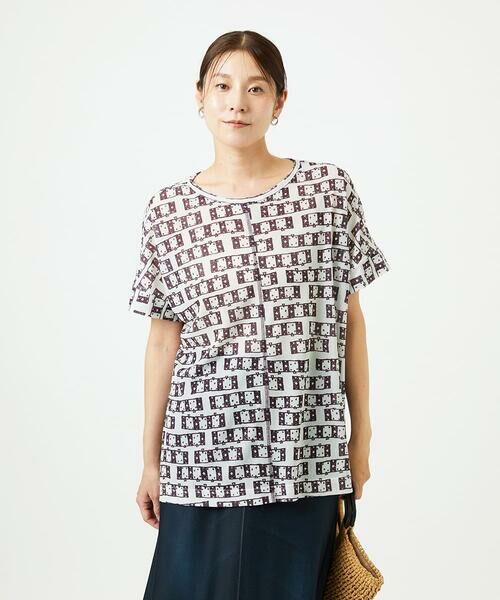 たっぷりとしたシルエットに、ドロップショルダーで肘に隠れるくらいの袖丈。スタイリッシュに着られるバランスのとれたプリントカットソーです。前身頃の中心に切替を入れてプリント柄をあえてズラすことでシルエットの大きさを感じさせないデザインに。