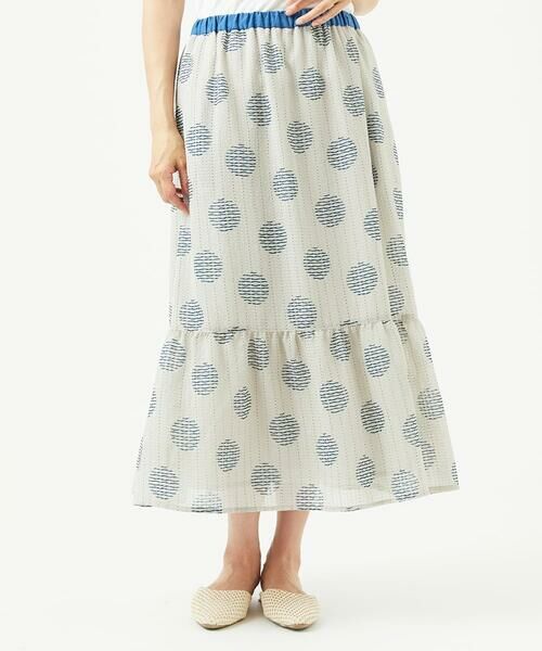 シンプルなトップスでも様になるドット柄スカート。歩くたびにふんわり揺れるシルエットで上品なスタイルに見せてくれます。裏地付きで透ける心配もなし。同素材のブラウス[NGBJB12290]とセットアップ着用もおすすめです。