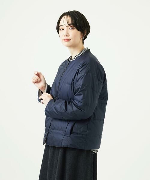 トレンドのショート丈で、2つの表情が楽しめるリバーシブルダウンジャケットです。表側はダウンステッチを効かせているので、デニムやワイドパンツとラフにコーディネートをお楽しみいただけます。裏側は、ステッチレスが上品見えするのでカジュアルスタイルにもお勧めです。両面ともうれしいポケット付きです。