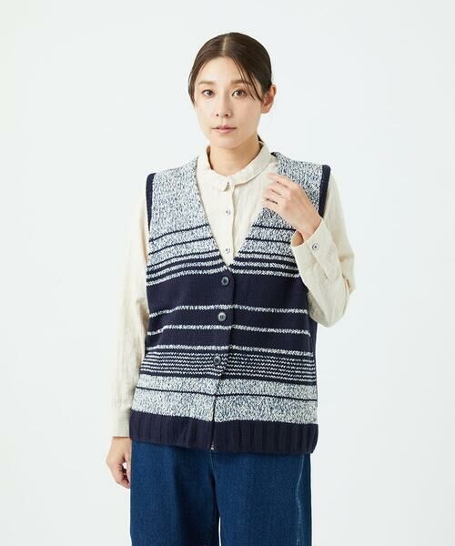 GIANNI LO GIUDICE / ジャンニ・ロ・ジュディチェ セットアップ | [洗える]カスリパネルボーダーニットベスト(ネイビー)