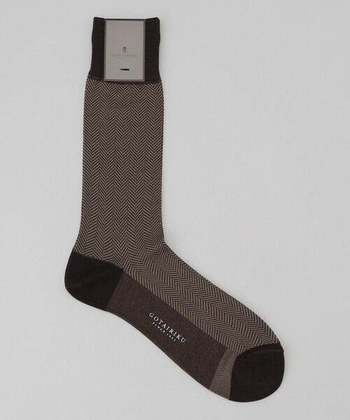 ズレ防止のため履き口の裏糸にはライン状にウレタン糸を配列。通常の糸使いよりも数段ふくらはぎからのズレ落ちを防ぎます。地面に水平の足に対して脚は垂直に生えているため、ソックスを履くと前足首に表地がたまってしまいがちです。 そこで前足首部分だけ度目を詰めて距離を縮め、かかとの丸み(ヒールカップ)に奥行きを持たせて改良しています。結果、普段の足首の角度に近い形状になります。まさにドレスソックスとして必要な見た目と機能性を全て兼ね備えた逸品です。