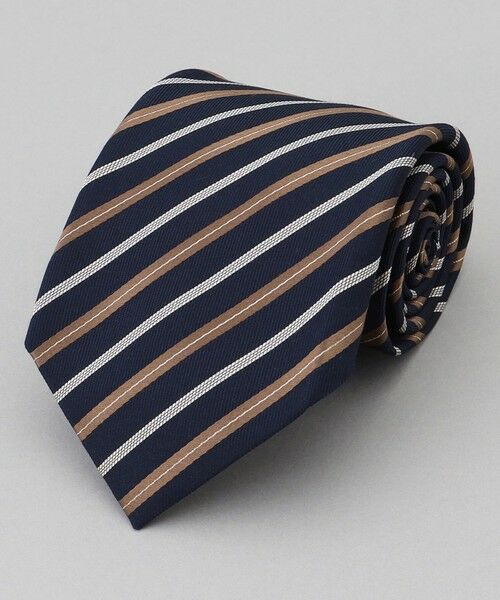2025 秋冬 【日本製】ネクタイ 京都西陣地区で織られる生地を使用。 日本国内の職人による縫製かつ、柄そのものから別注したオリジナルアイテム ーーーーーーーーーーーーーーーーー 25年秋冬のテーマは、COMFORT CHIC(洗練された、カイテキ) モダンで落ち着いた装いに、快適性と実用性を兼ね備えた、スマートコレクション ブランドコンセプトである“Gentleman's Wardrobe”の仕上げにふさわしい逸品です ーーーーーーーーーーーーーーーーー ■染色 シルクの染めは「枷染め」と言い今では着物くらいにしか使われなくなった染色技法です。シルクは伸びたら痩せて戻らなくなります。ですので製造工程上、出来るだけ糸にテンションを掛け無いように気を遣います。「枷染め」は糸をゆったりと輪の状態で染めるので最適な技法です。手がかかる理由から年々無くなっているのが現状です。 ■織り 同じく京都西陣地区で織られています。織信(おりしん)という老舗の機屋さんで、ネクタイ業界では国内のトップクラスです。昔ながらの低速織機で”糸に緩みを持たせて織る”、”横糸をしっかり打ち込む”、これらは最新のスピードを出す機械では出来ないことです。生地の膨らみとしっかりとした生地が織り上がります。 ■仕上げ プレスする事でもシルクは潰れて痩せてしまいます。それを嫌ってプレスしない所が多いですが、タワみも味と捉えています。タワみを気にされるお客様もいらっしゃいますのでこの製品では極力弱いプレスをかけて整えるのみにとどめています。こうしてできる製品は締める時のギュッという感覚とシルクの膨らみを感じて頂けます。織組織によっては絹鳴りのギュウッという音もするかも知れませんが、それが本来のネクタイのあるべき形だと思っています。 ※画像はサンプルを使用しているため、実際にお届けする商品と仕様やサイズが異なる場合がございます。 ※画像の商品はサンプルです。実際の商品と色味、仕様、加工、サイズ、素材等が若干異なる場合がございます。 ※照明の関係により、実際よりもやや明るく見える場合がございます。またパソコンなどの環境により、若干製品と画像のカラーが異なる場合もございます。予めご了承くださいませ。