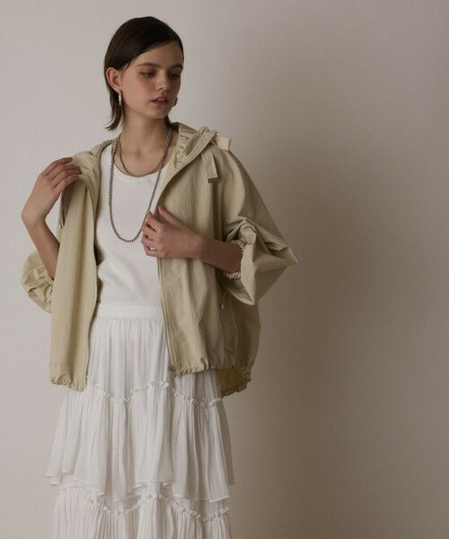 ナイロン100%の上質な風合いのタフタ素材でお作りしたフードジャケット。ファスナーの開け方次第で衿にもスタンドカラーにもなり、イメージを変えて楽しめるのがポイント。前後で着丈差を設けた構築的なバルーンシルエットや袖のボリューム感が愛らしく、カジュアルになり過ぎず女性らしく着て頂けます。ヒップが隠れるゆったりとしたオーバーサイズシルエットで、バサッとラフに羽織っておしゃれに決まる一枚。スイッチシーズンの主力アウターとしてご活躍いただけるアイテムです。