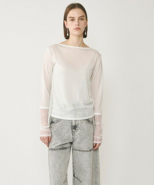袖先に切り替えた涼やかな透け感がアクセントになり、一枚着としてはもちろんの事、カーディガンやジャケットの袖口からちらりと覗かせた時にもおしゃれに決まります。