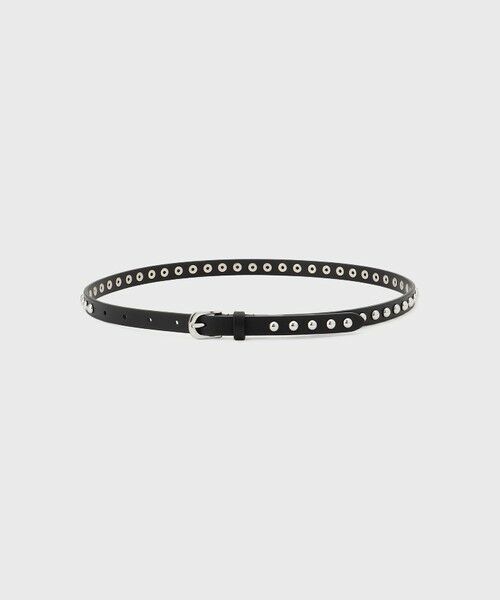 スタッズをリズミカルに並べた、モードな雰囲気薫るレザーベルト。上質な牛革を使用した高級感のある一品。スタッズをふんだんに飾ったちょっぴり辛口なデザインながら、細幅のスマートなデザインでさらっと合わせやすいのも魅力。デニムに合わせたカジュアルスタイルにはもちろん、ワンピースの上から付けて引き締めた着こなしも今季らしくておすすめです。※こちらのモデル着用画像はサンプル品を撮影しております。実際の商品と仕様、加工、サイズが若干異なる場合がございます。予めご了承くださいませ。