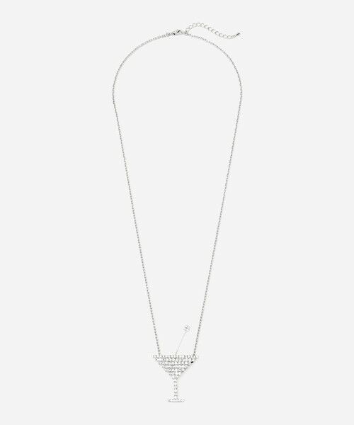 コーディネートのポイントになる、カクテルグラスのモチーフネックレス。キラキラと煌めく姿が美しい、キューブ型のチェコガラスを組み合わせてお作りしました。カクテルを混ぜるマドラーも繊細に表現した遊び心溢れるデザインです。
