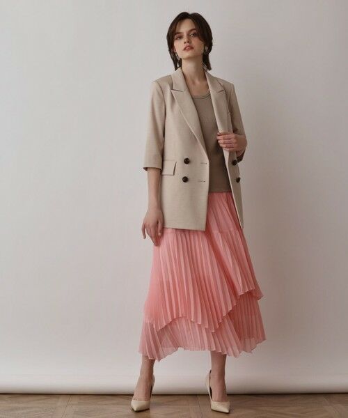 柔らかいシフォン素材を使用した、イレギュラーヘムシルエットのレイヤードスカート。 ヒップ部分は細かいプリーツでボリュームを抑え、裾にボリュームを出すことでマーメイドのような女性らしいシルエットを表現しています。ヒップ周りをすっきりとさせて、裾の華やかさで見せるディティールが新鮮な一枚。体型を選ばず、綺麗に穿いていただけるように拘ったのもポイントです。 色はベーシックカラーのグレーに鮮やかなピンクとブルーを加えた3色をご用意しました。