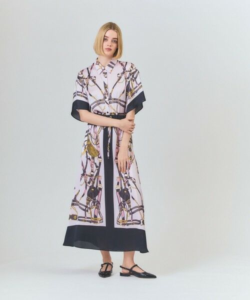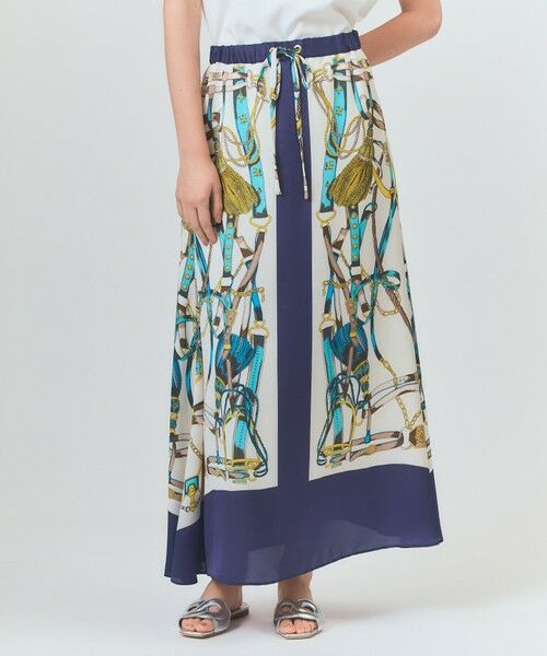 【Japan Fabric】主役級の存在感を放つ、夏にぴったりな着映えロングスカート。落ち感が綺麗でサラッとしたツイル地を使用。そこにヴィンテージ図案から着想を得て作成した、繊細なスカーフ柄をのせた美しい佇まいの一枚です。ややフレアラインの広がりすぎない大人っぽいロングシルエット。真ん中にあえてT字の無地ラインを通す事ですらっと美脚に見える、パターンプリントならではの良さを活かしたデザインです。穿き心地の良いウエストドロスト仕様が、気取らないリラックスしたおしゃれを楽しめるポイント。お揃いでお作りしたシャツを合わせれば、ワンランク上のセットアップスタイルをお楽しみいただけます。