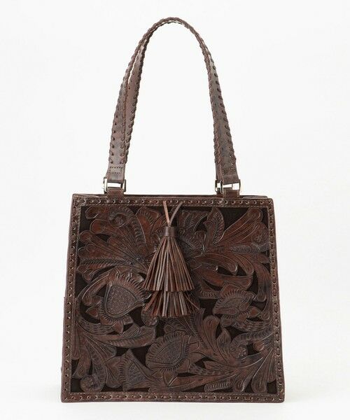 カットワークが映える美しい表情と端正なスクエアシルエット印象的なバッグ。シーズンを通してお使いいたけるカラー展開でご用意しました。フロントにタッセルをトッピングして、品の良いアクセントをプラス。オンオフ兼用でお使いただける逸品です。