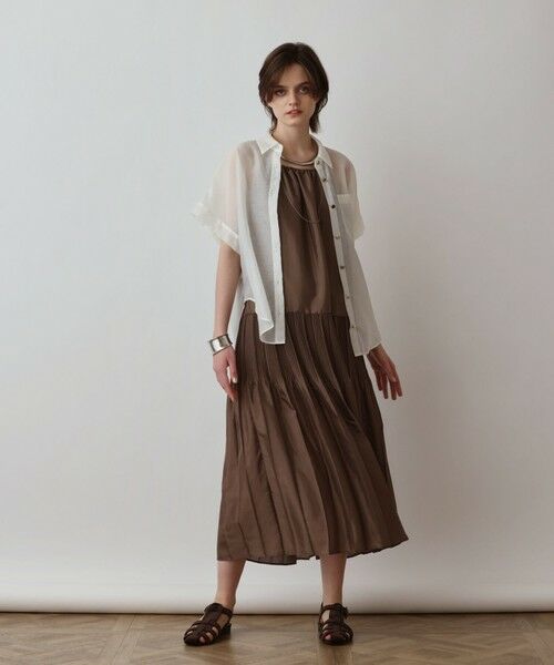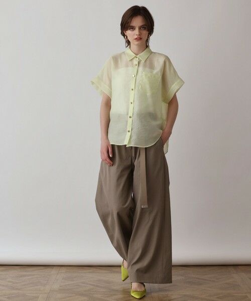 ナチュラルなムード漂う、シアーオーガン地でお作りしたドルマンシルエットシャツ。ややマットな質感で、少しワッシャーもかかったような美しいオーガン素材を使用。ゆったりとしたドルマンスリーブは、身体から離れるため通気性が良く、汗ばむ季節でも快適です。少し肩にかかるくらいの袖丈は気になる肩や二の腕も隠れる為、ボタンを閉めてブラウス感覚で着ても可愛いですが、サマードレスの上から羽織ったり、タンクトップやベアトップに合わせたり、真夏の軽い羽織りとして重宝。お揃いのスカートとセットで着る事で、新鮮なスタイリングもお楽しみいただけます。清涼感溢れるホワイトと、夏のシンプルになりがちなスタイリングに華やかさを演出する綺麗な発色のパープルやイエローの3色をご用意しました。