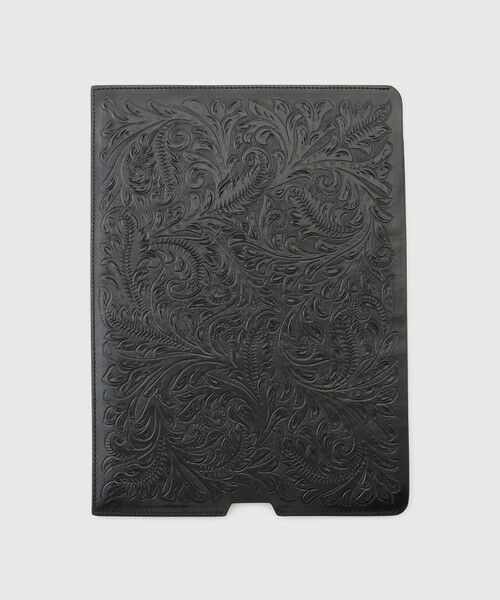 iPadケースとしてもドキュメントケースとしても使えるカバー。iPadを入れた状態でも充電が出来る便利な仕様です。A4サイズの書類も入る為、ワークシーンにもおすすめ。ユニセックスで持てるリーフ柄にシックな色展開でお作りました。