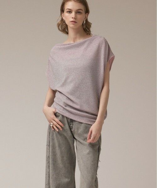 繊細なラメと美しいドレープディティールが目を惹く、女性らしいデザインのドルマントップス。チクチクしない肌あたりの良いジャージ素材を使用した、ストレスのない着心地が魅力です。程よいラフさを残しながらも美しいドレーピングの出るパターンでお作りしました。あえて直線ではなくイレギュラーにパターンを引き、着ると自然なドレープラインを描きます。ジャージで衿ぐりが伸びるため自由に肩を落とせるのもポイント。シンプルながらも個性の効いた主役級トップス。カジュアルスタイルにもフェミニンなスタイルにも似合う、ワードローブの新定番アイテムです。