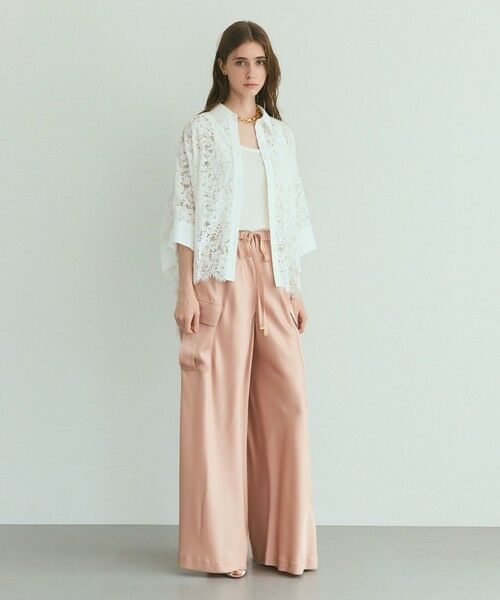 繊細で美しいレースでお作りした涼し気な印象のポンチョシャツ。 高級感のあるコードレースをふんだんに使用して、襟・前立て・袖口に異素材を切り替えて甘くなりすぎない大人な雰囲気薫るデザインに仕上げました。ゆったりとしたスクエア型のオーバーサイズに、裾はスカラップで処理した美しい仕様。袖丈は手首が覗くよう短めに設定し、晩夏から初秋にぴったりなデザインに。一枚でも前を開けて羽織りとしてもおしゃれに決まる主役級アイテムです。