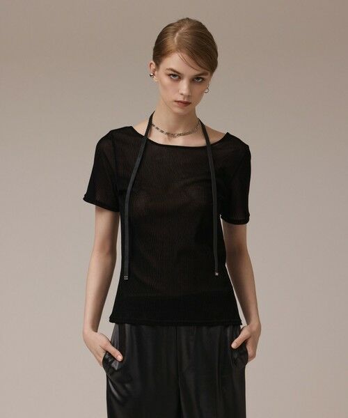 程よい透け感と起毛感、そして縦リブの凹凸などで表情を持たせたワンランク上の上質なデザインです。デコルテが綺麗に見える開き具合にも拘った、女性らしい華奢見えシルエット。