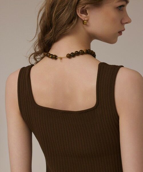 一枚で着て様になる、シンプルながらもディティールに拘ったノースリーブトップス。コットンをブレンドした糸で編み立てた肌触りの良いニットのボディに、さりげなくフリルディティールを施して、女性らしい可憐なデザインに仕上げた一着です。すっきりとした縦リブに、ボディに程よくフィットするシルエット。そしてデコルテが綺麗に見えるネックラインで、大人の女性がフェミニンに着て頂けるデザインに仕上げました。そのまま一枚でヘルシーに着て頂くのはもちろんの事、ジャケットなどのインナーにも重宝するアイテム。定番として手に入れたいブラックに、秋の気配を感じつつも日焼け肌に似合うシックなブラウンの2色をご用意しました。