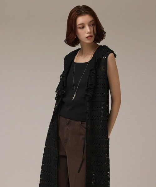 大人フェミニンを演出してくれるロングレースジレカーディガン。