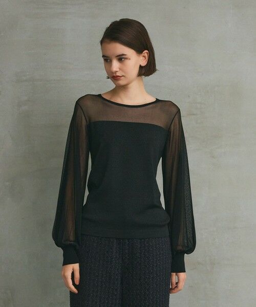 16ゲージの上質なヴィスコースで編み立てた、しなやかな着心地のニットトップス。 ヨークと袖がシアー編みになった、ほのかに漂う女性らしい雰囲気が魅力のアイテム。袖をふっくら愛らしく仕上げ、シンプルながらも個性を効かせました。