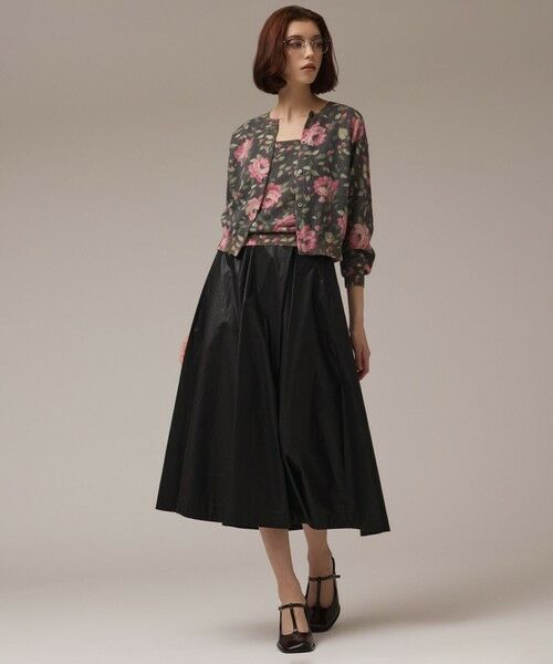 晩夏から秋にかけてぴったりな、綿混素材のさらっとした着心地のカーディガン。ハイゲージで編み立てたニットに、オリジナルのフラワープリントのせた華やかな一枚。クラシックな柄感とシックなカラーパレットが上品に着映える、大人の魅力が詰まったデザインです。やや短めの着丈感で、ワイドパンツやフレアスカートなど旬なボリュームボトムスと相性良く合わせて頂けるのもポイント。お揃いでお作りしたノースリーブトップスを合わせた、統一感のあるアンサンブルスタイルもおすすめです。