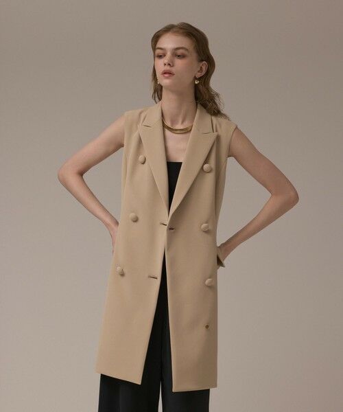 アセテート混のしなやかなダブルクロス素材でお作りしたミニワンピース。 マニッシュムード漂うテーラード型に大きなくるみ釦を添えて、ミニマルな表情に仕上げた大人なデザインです。仕立ての美しい上品な表情とミニ丈の女性らしいバランスが、アーバンムード漂う旬な印象の一枚。前を閉めれば程よくウエストでシェイプしたシルエットの綺麗なワンピースに、開けてラフに羽織ればジレとして今季らしいレイヤードスタイルをお楽しみいただけます。