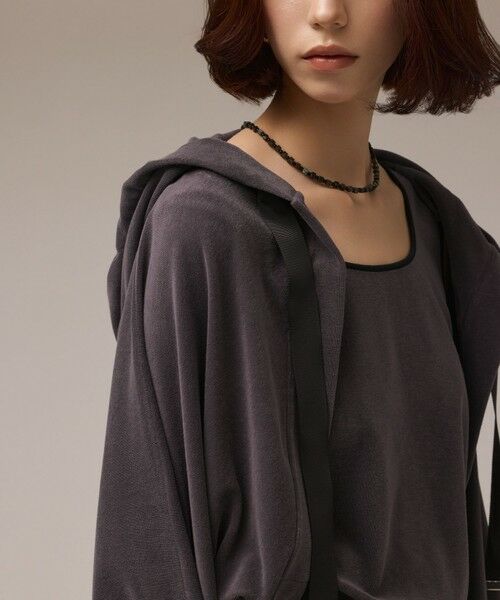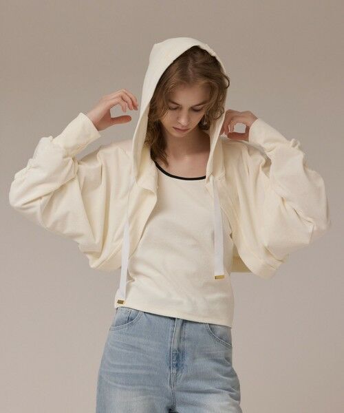 着回し自在、ボレロとノースリーブのセットアップアイテム。コットンブレンドの肌触りの良いパイル素材を使用した、着心地の良いデザインです。フーディーは着丈短めで、ギャザーをたっぷりと入れたボリュームスリーブが映える、袖コンシャスなシルエット。タンクトップはパイピングを効かせたシンプルなデザインで、様々なアイテムと万能に合う一枚に仕上げました。一緒に着ると統一感のあるセットアップスタイルに、それぞれ単品でもおしゃれに決まる万能さが魅力的なアイテムです。