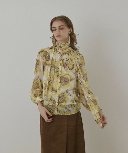 アメリカの様々な名所がプリントされた、ヴィンテージムード漂うボウタイブラウス。オリジナルで作成したスーヴェニールプリントが、雰囲気のある装いへと導いてくれます。首元のボウタイは、リボンにしたり軽くサイドで巻いたりとアレンジも様々楽しめて◎デニムと相性良く着て頂けるライラックとスエードやブラウンカラーと合わせたいイエローの2色をご用意しました。晩夏から秋にかけて着たい主役級着映えブラウスです。