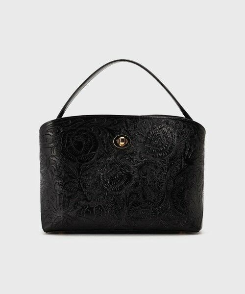 美しいフラワー柄が映えるスクエア型のバッグ。上質な革にゴールドのアクセントが品よく溶け込んだ、上品なデザインです。女性が片手で持った時にバランスの良い絶妙なサイズ感も◎中は真ん中に収納スペースを設けたコンパートメント仕様で、整理しながら使える優等生。付属のストラップを取り付ければ肩掛けも楽しめる嬉しい2WAY仕様です。
