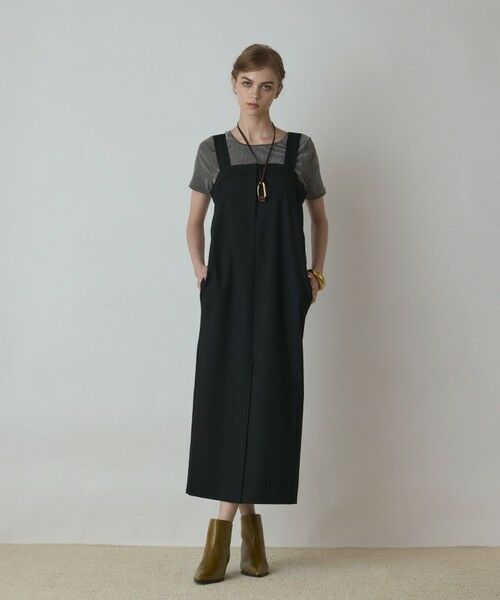 晩夏から秋にかけて着たい、美シルエットのジャンパースカート。ボディラインを拾わない、大人っぽく上品なスタイルを叶えるストレートシルエット。大人に似合う品の良い奥行きのあるカラーが、洗練感のあるシーズナブルな装いを楽しめるポイントです。歩きやすさと抜け感をプラスする、フロントに施した深めのスリットも◎まだ暑さが残る時期はカットソーを、涼しくなったらシャツやハイネックを合わせて…と長い期間楽しめるのも魅力です。セットアップで楽しめるジャケットを合わせた、ワンランク上のコーディネートもおすすめです。