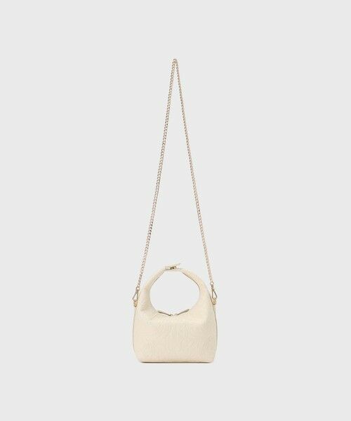 裏面はあえて一度洗いをかけた柔らかいシボレザーを使用する事で、丸みのあるシルエットを出しています。マグネットで取り外せるハンドル部分にもファスナーを付けて、間口が大きく開くように設計しました。付属のチェーンストラップをセットすれば肩掛けもお楽しみいただける2WAY仕様です。