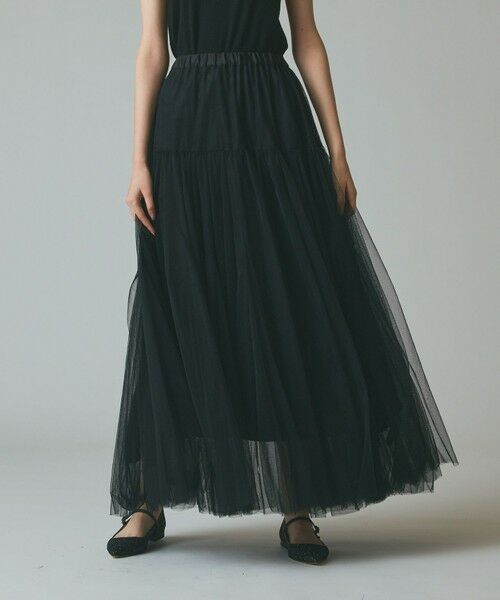 チュールならではの美しい透け感や柔らかな揺れ感が視線を惹きつける、着映えロングスカート。繊細で柔らかなナイロンチュールを幾重にも重ねてボリュームを出した、ドラマティックな存在感を放つクチュール感のあるデザインです。細かく三角マチを贅沢に施した事で、軽やかな分量感や歩いた時の美しい動き、そしてリュクスな佇まいがスタイリングに映える特別な表情を演出します。穿き心地の良いウエストゴムが、気取らないリラックスしたおしゃれを楽しめるポイント。あえてブルゾンやスニーカーで合わせたデイリースタイルにも◎クラス溢れる大人の魅力が詰まった一着を、この機会にぜひ。
