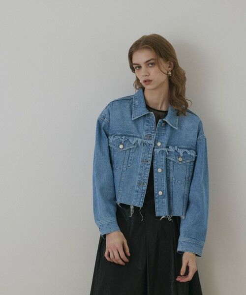 ヴィンテージムード漂う主役級デニムジャケット。11オンスのコットン100%デニムを使用しゴワつき感を抑えた、軽く羽織れる一枚です。長めのフリンジや裾の大胆なクラッシュディティールで、グランジ感をプラス。ゆったりとしたルーズなシルエットに、着丈はやや短めに設定してこなれ感を出し、様々なボトムスと相性良く合わせて頂けるデザインに仕上げました。長年着込んだような絶妙な色落ちもポイント。大人のデイリーカジュアルの定番としておすすめしたい、スイッチシーズンにぴったりなアイテムです。