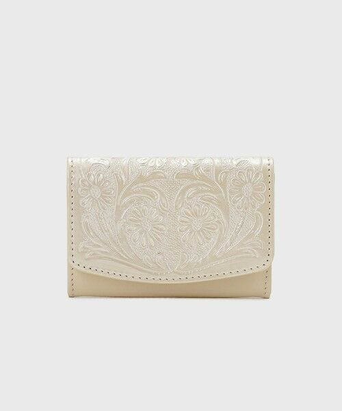 スナップボタン付きのフラップ型の名刺ケース。 上質な牛革に草花を丁寧に彫ったクラス感溢れるデザインです。手元に収まるサイズ感で持ち運びやすい一品。ご自身用にはもちろん、ギフトにもぜひ。