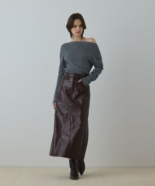 ワンランク上のモードな装いを楽しめるフェイクレザースカート。生地を繋ぎ合わせた、こなれ感のあるリメイク風のディテールがポイント。細身過ぎない程よいセミタイトシルエットで体のラインを強調し過ぎない為、着やすく仕上げたのも大人に嬉しい一枚です。バックスリットを施して、足捌きにも配慮しました。ブラックはマットに近い程よい艶があり、ボルドーは深みのあるカラーにあえて光沢感を強く出し、カラーによって見え感を変えています。存在感のある主役級ロングスカートを、この機会にぜひ。