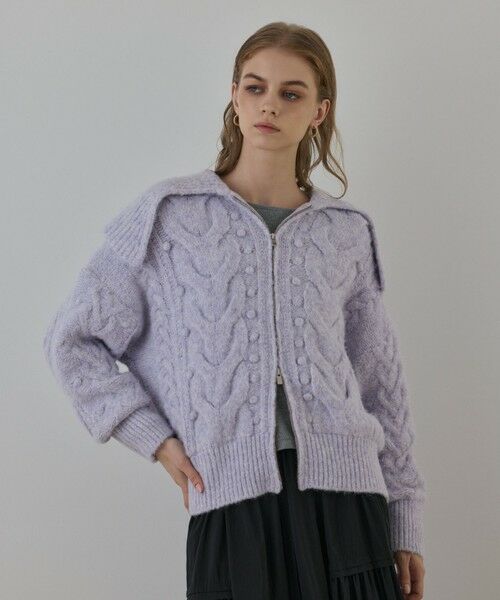 毛足の長い柔らかい糸で編み立てたニットジャケット。裏地付きで暖かく、ジャケット感覚で真冬直前まで羽織れる一枚に仕上げました。大きな衿とほんのりレトロな編地、そしてヒップにかかるゆったりとしたシルエットがポイント。サイドから見た時のほのかに丸いシルエットに拘り、ニュアンスのある大人のカジュアルスタイルへと導いてくれます。ワイドパンツにラフに羽織ったり、ゆったりとしたワンピースに合わせ女性らしいリラックススタイルを楽しんだりと、カジュアルにもフェミニンにも相性良く合わせて頂けるアイテムです。