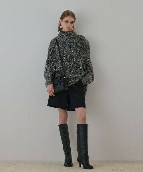 ネップヤーンを使用したニットトップス。 長めのフリンジ付きケープを付けて表情豊かに仕上げた、存在感溢れる一枚です。首元まで暖かなハイネック仕様にゆったりとしたシルエットが、大人のエフォートレスな装いを楽しめるポイント。コーディネートの鮮度を高めてくれる主役級ニットを、この機会にぜひ。