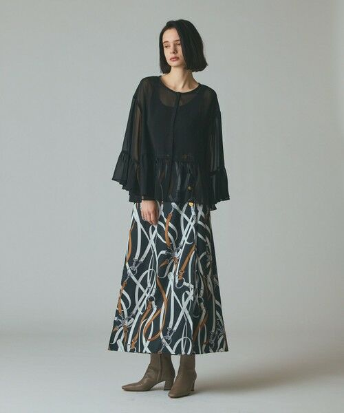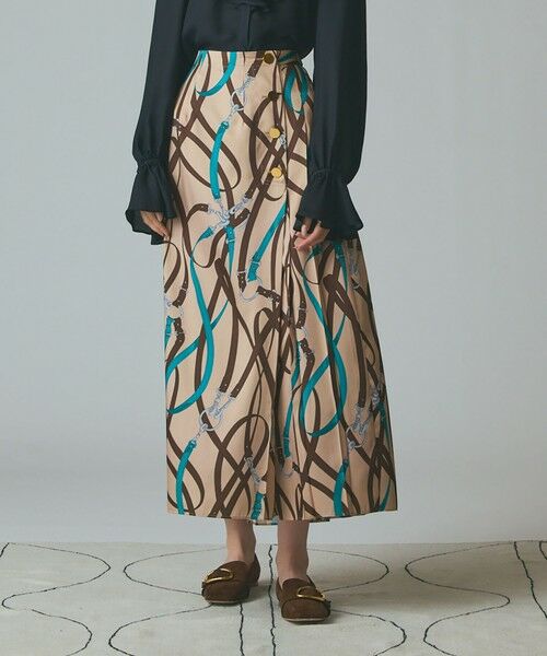 インポートならではの美しい素材を贅沢に使用した、ラグジュアリーマキシスカート。イタリアのRATTI(ラッティ)社のベルトモチーフプリント柄のツイル地を、スペシャルオーダーで別注カラーをつけた特別仕様の一枚です。ヴィンテージムード漂うカラーをのせる事で、大人の女性が品よく着て頂けるデザインに仕上げました。アシンメトリーにプリーツテクニックを入れた、360度どの角度から見ても様になる凝ったディティールが魅力です。フロントにはメタルボタンを4つリズミカルに並べて、アーバンムード漂うアクセントをプラス。バックゴム仕様にラップ風のデザインにする事で足さばきも良く、ストレスのない着心地も嬉しいポイントです。