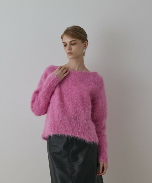 アルパカ高混率の糸でお作りした、上質なオーバーサイズニットトップ。アルパカが 73%も入っている事で軽くて保温性・吸湿性に優れ、滑らかな肌触りやふんわりとした表情が愛らしい、非常に着心地の良い一枚です。真冬にも着られる毛足感がありつつも厚くなく、衿ぐりは抜け感のあるボートネックを採用する事で、Diagramらしい女性らしいデザインに仕上げました。冬はジャケットやコートの中に入れたりと、秋から真冬までロングシーズンでお楽しみいただける一品。発色がきれいに出る良さを活かしたピンクとブルー、そしてニュアンスのある杢グレーの3色展開です。