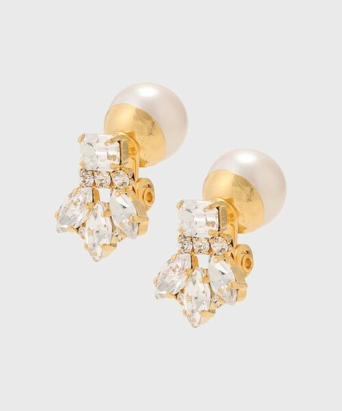 オリジナルのガラスビジューパーツがポイントのイヤークリップ。 ボリュームのあるパールでバックスタイルまでこだりました。