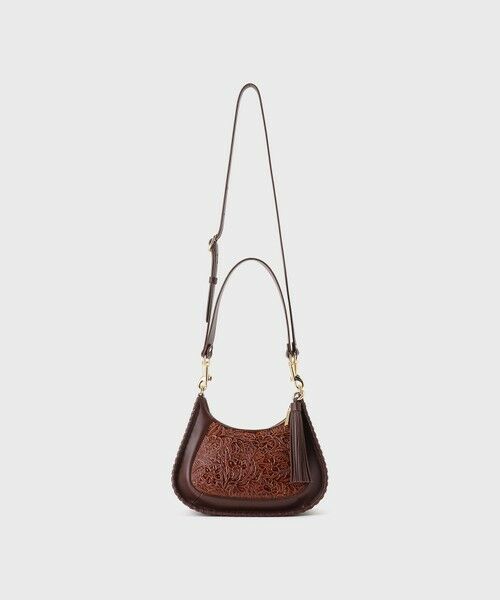 立体感のあるフォルムに拘ったデザインをカーヴィングしました。ハンドルとショルダーストラップの2点が付属。