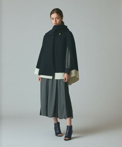 【Japan Fabric】ラフに羽織るだけでトレンドスタイルを叶えてくれる、大人なケープコート。軽く暖かで、高級感のある毛足のあるPure Super100の上質なラムウール素材で仕立てた、上質な一着です。裏地がなく、しなやかで軽い着心地のリバー縫製で丁寧にお作りしました。ゆったりとしたシルエットにも拘り、程よい抜け感を感じられるデザインが魅力。バイカラーのモダンな表情が洗練感をプラスし、装いを優雅に印象付けます。同素材のストール付きで多彩なアレンジも楽しめる優等生。 コーディネートの主役として活躍いただけるアイテムです。