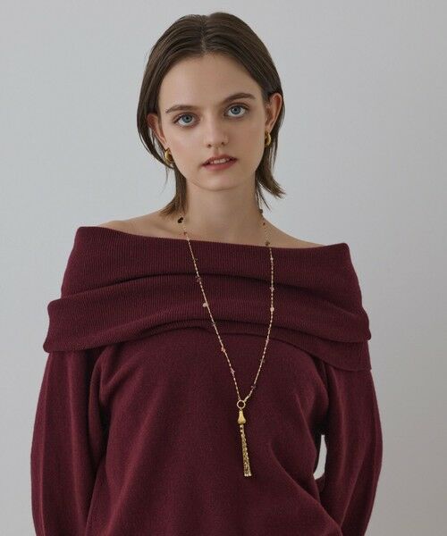 上質なウールの100%の糸で丁寧に編み立てた、オフショルダーのニットトップス。 やや薄手に編み上げ、さらっと着やすい肉感でお作りしました。寒暖差のある時期や室内のシーンにも取り入れやすく、より女性らしい雰囲気を楽しめる一枚です。衿ぐりはリブの編地を採用。伸縮性があり、女性らしい抜け感のあるオフショルダーやボートネック、オフタートルなどデザインの変化を楽しむことができる、スタイリングの幅が広がるアイテムです。室内ではオフショルダーにして、アウターを羽織るときはオフタートルにすれば冬まで活躍。 シンプルで着合わせやすい、大人のニットトップスをこの機会にぜひ。