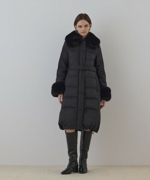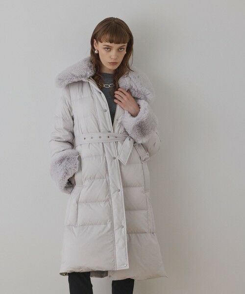 この冬を品よく彩るフェミニン仕様のロングダウンジャケット。保温性が高いとされるダウン 90%・フェザー 10%の黄金比率に拘った、非常に軽くて柔らかい、はっ水機能のあるタフタ生地でお作りしたハイスペックモデルです。衿と袖口には肌触りがよいリュクスなボリュームのある上質なエコファーをあしらって、GRACE CONTINENTAL らしいエレガントな華やかさを演出。着膨れが気になりやすいダウンですが、サイドのパネルを縦長のステッチにすることで脇が身体のラインに沿うようなすっきりとしたラインになり、どの角度から見ても様になる美シルエットに拘りました。ウエストと裾にはドロストリングを内蔵し、絞ることでよりフィット&フレアのシルエットを強調したり、シルエットに変化を付けることができます。また開けて軽く羽織った時も女性らしいシルエットになるよう拘ったのもポイント。ダウンジャケットを女性らしく昇華した、この冬の本命アウターです。