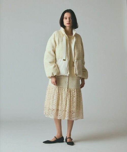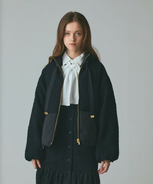 【Japan Fabric】 カジュアルなダウンブルゾンを女性らしく昇華した、他にはない主役級の存在感を放つ一着。小さなスパンコールが散りばめられた上品な輝きのあるツイードと、上質な中綿でパフィー感を出したタフタ素材を組み合わせた、表情豊かな一品です。薄手で軽い、国内で別注で作った上質な素材を活かしたシンプルなデザイン。真冬まで頼れる首元まで暖かなディティールに、保温性が高いとされるダウン 90%・フェザー10%の黄金比率に拘った、非常に軽くて暖かい真冬まで頼れる実力派です。襟には太紐を通して先端にメタルのアクセントをトッピングする事でカジュアルさを和らげ、洗練感をプラスしました。冬を彩る本命アウターを、この機会にぜひ。