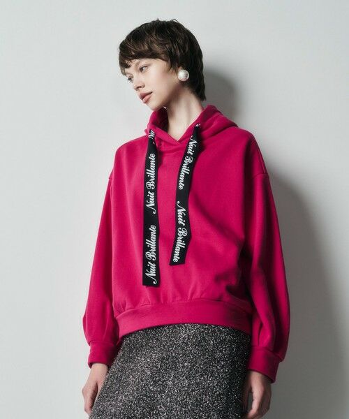 【Japan Fabric】 コーディネートをモードに格上げ、大人にぴったりなフーディーな登場。柔らかなコットン100%の国産裏毛を使用し、中に薄い天竺を重ね膨らみとバルーン感を出した一枚。レタードプリントが入った太幅リボンをフードに長めに通して、他にはないオリジナリティ溢れるデザインに仕上げました。長過ぎず短すぎない、スカートにもパンツにも似合う定番として活躍いただける大人のフーディ。定番のブラックと、差し色になるピンクの二色展開です。