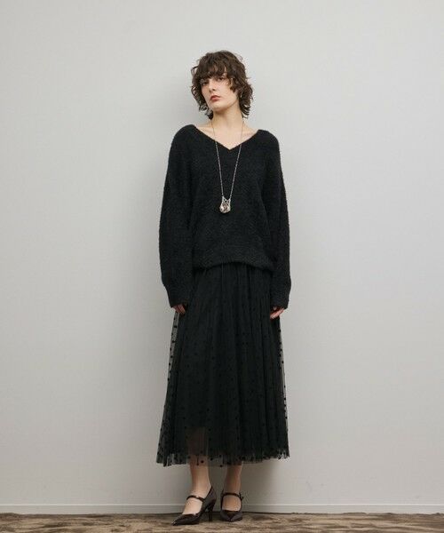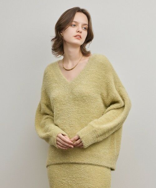 小さなスパンコールの入ったラメフェザー糸の華やかなニットトップス。 同シリーズでおつくりしたラメフェザーニットスカート【品番:0326123314】のご用意もございます。 ※こちらのモデル着用画像はサンプル品を撮影しております。実際の商品と仕様、加工、サイズが若干異なる場合がございます。予めご了承くださいませ。