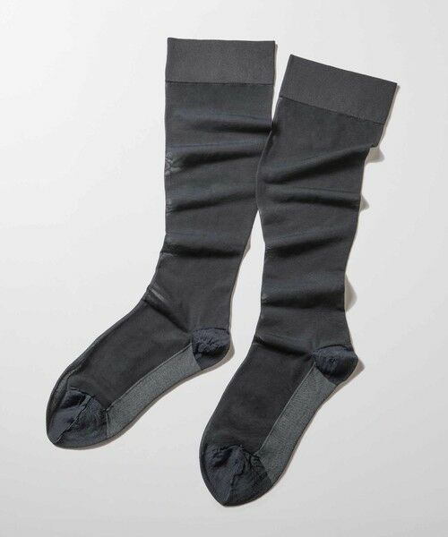 トレンド感たっぷりな透け感と、段階着圧機能で脚をしっかり引き締めるシアーハイソックス。