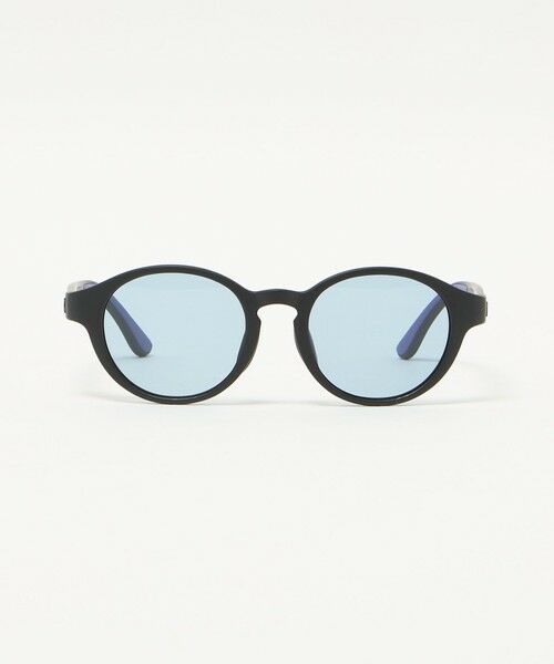 マットブラックのフレームに、眩しさを抑えつつ目元を彩るカラーレンズもポイントです。