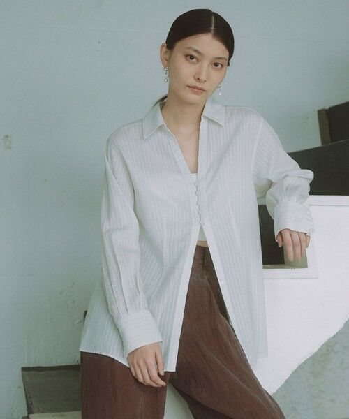 フロントは突き合わせにし、ボタンは中心に間隔をせばめて配置することで、裾の軽やかな抜け感が出るデザイン。